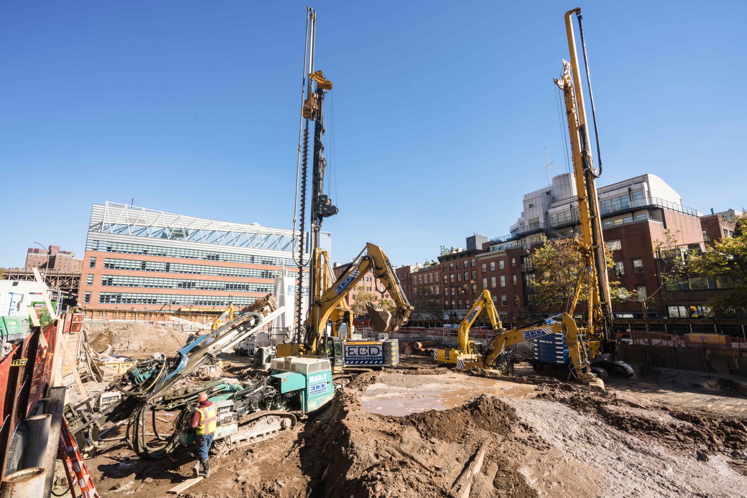 ECD is the largest foundation contractor in the New York City Metropolitan area and rapidly expanding up and down the east coast. Our mission is to provide owners with innovative yet practical support of excavation systems, and value engineered foundations but most important…our projects are delivered on time. We have a team of geotechnical engineers, project managers, operators, machinists and support staff to efficiently tackle the most challenging projects. Developers rely on us to collaborate with their Geotechnical and Structural engineers to aid in designing the most efficient and economical foundations, support of excavation designs and ground improvement systems. We are continuously acquiring the most technologically advanced equipment to increase our productivity and minimize costs for our clients. With our extensive fleet of equipment and innovative drilling techniques, we excel in difficult ground conditions.